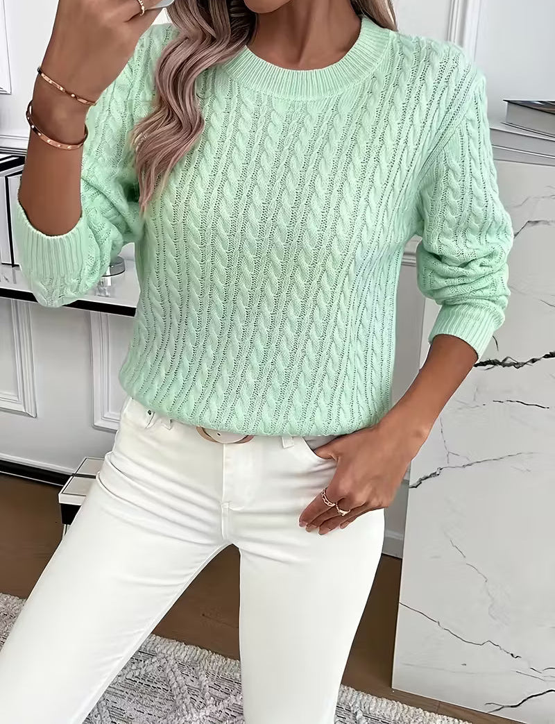La lavorazione a treccia dona movimento e un’eleganza discreta, mentre il filato morbido e traspirante avvolge con leggerezza senza mai appesantire. La linea dritta valorizza la figura in modo naturale, rendendolo un maglione versatile e senza tempo. È il modello ideale per accompagnarti dalla mattina alla sera, facile da abbinare e pensato per offrirti un comfort raffinato in ogni stagione.